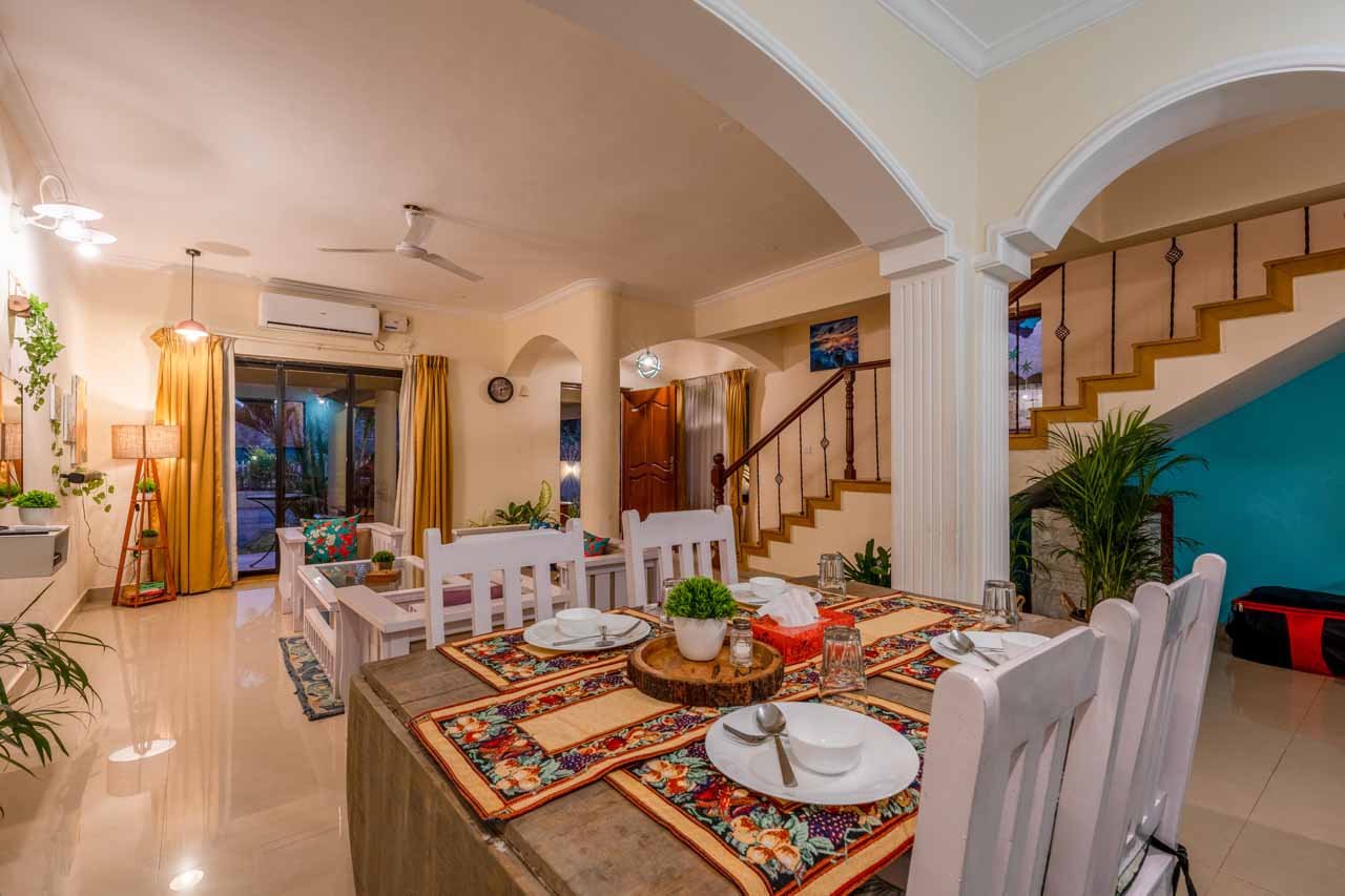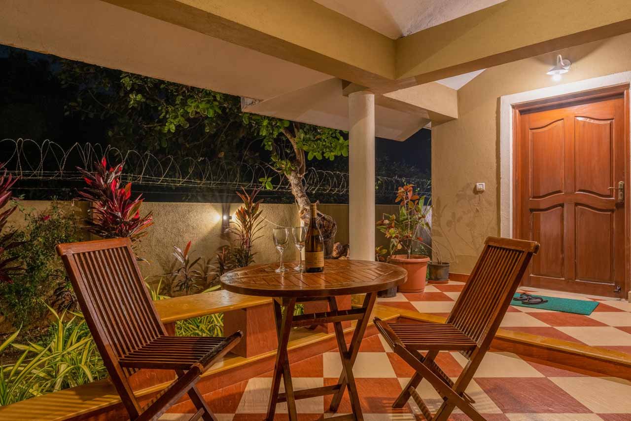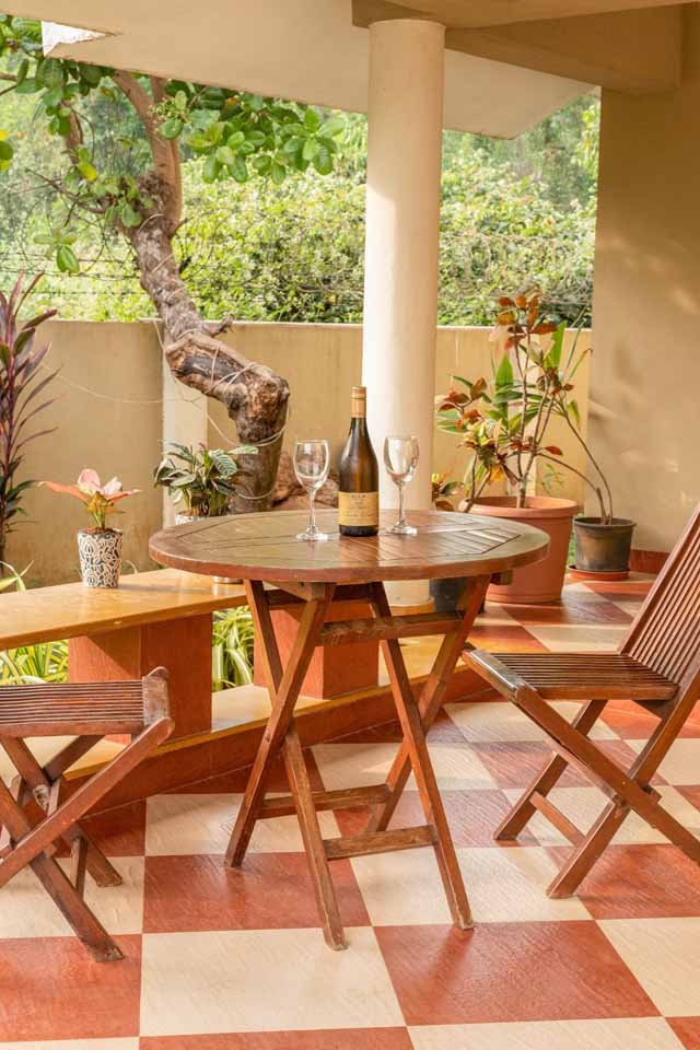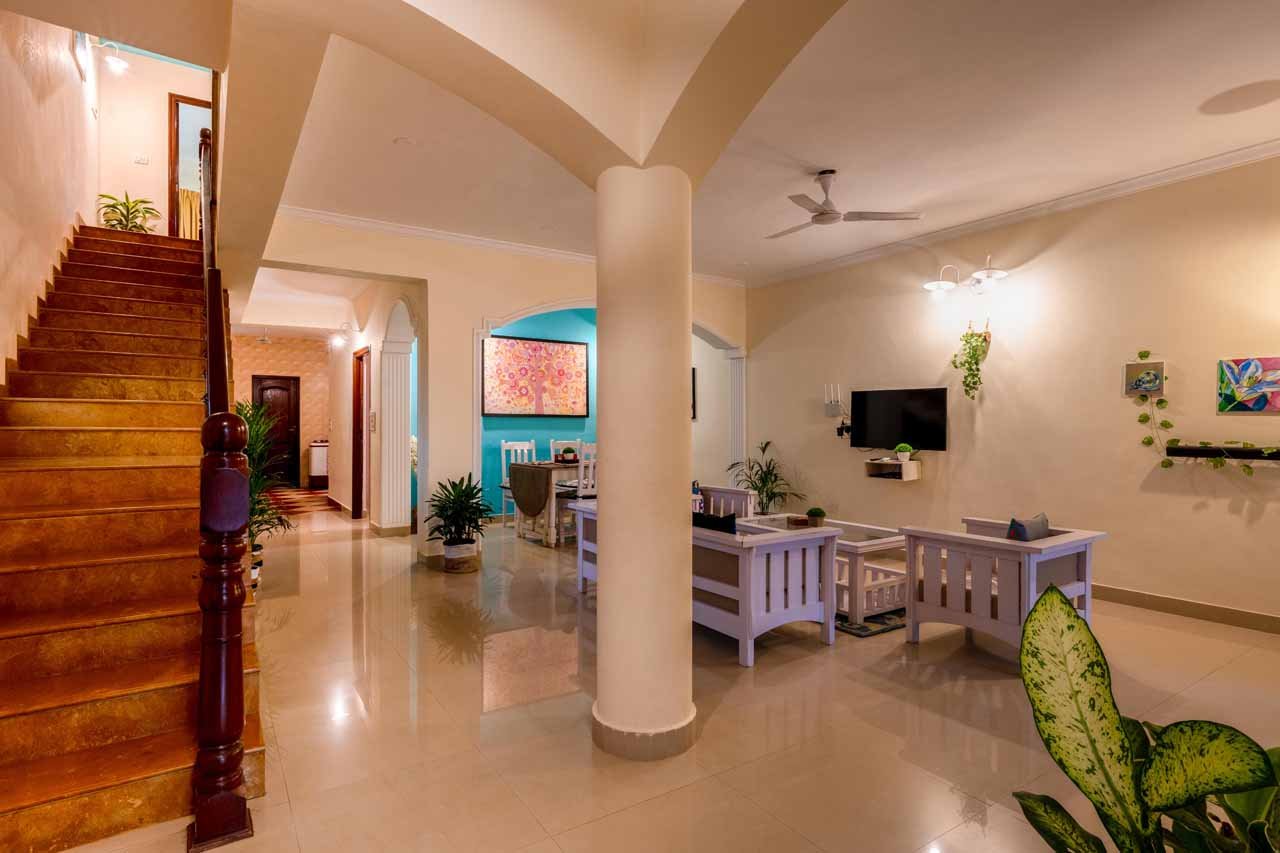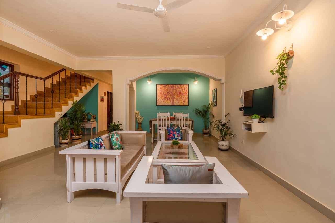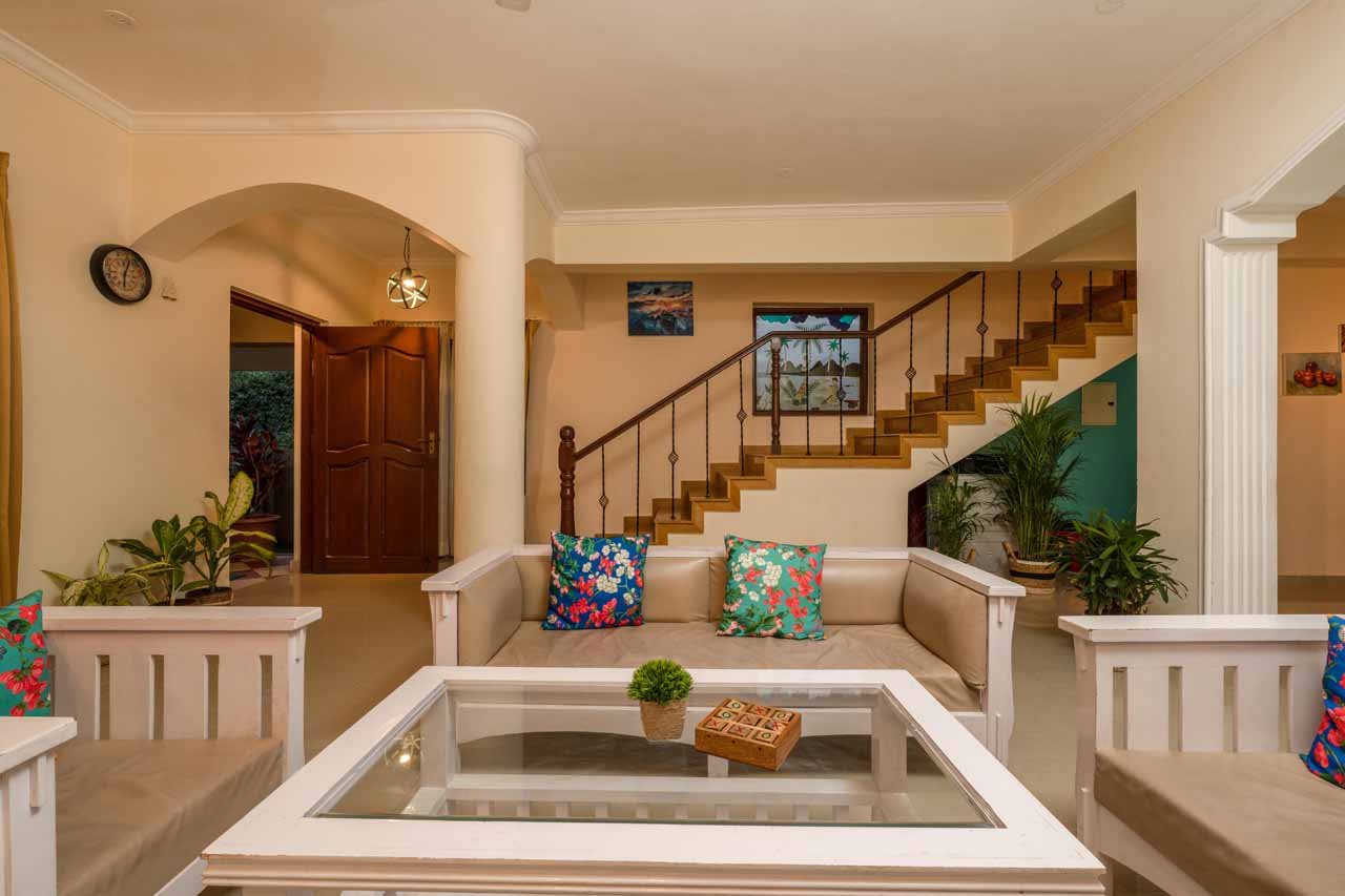 The villa is located in a secure complex surrounded by lush green cover and opens up to a view of the farm opposite to the space. The villa is in close proximity to the beaches of Colva and Betalbatim, which are 2.5 km away.