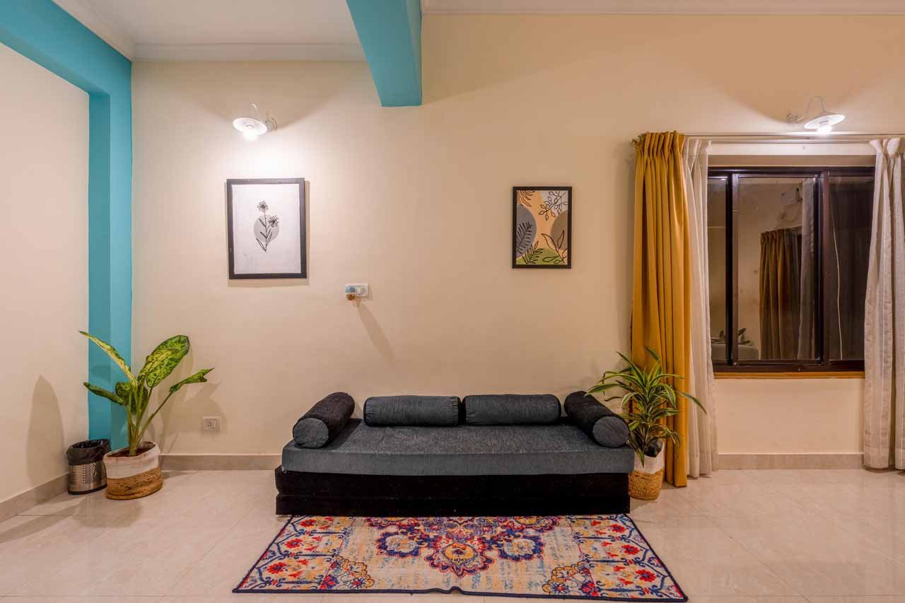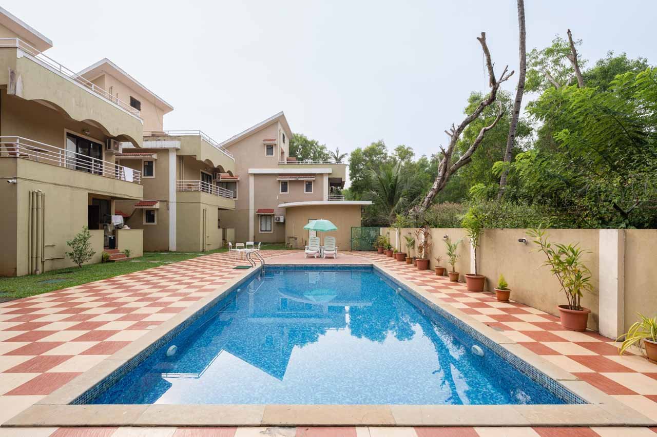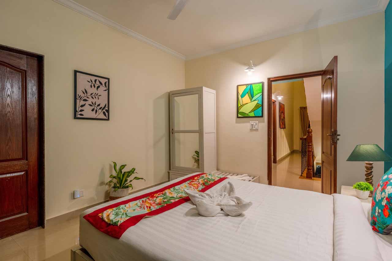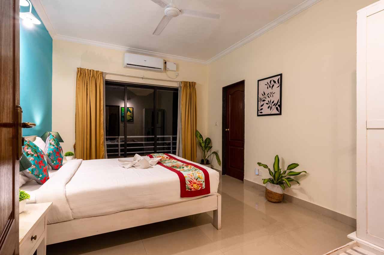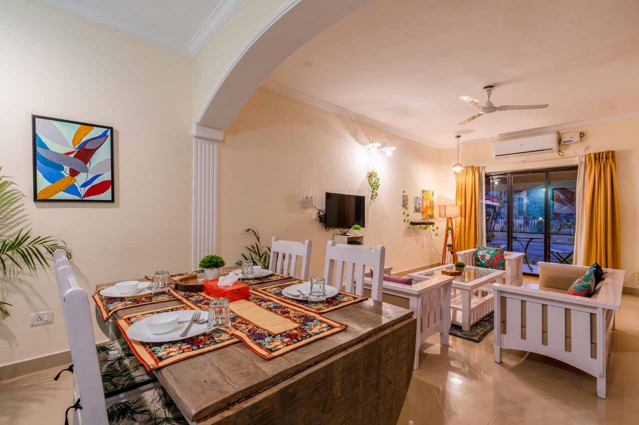 The villa is located in a secure complex surrounded by lush green cover and opens up to a view of the farm opposite to the space. The villa is in close proximity to the beaches of Colva and Betalbatim, which are 2.5 km away.