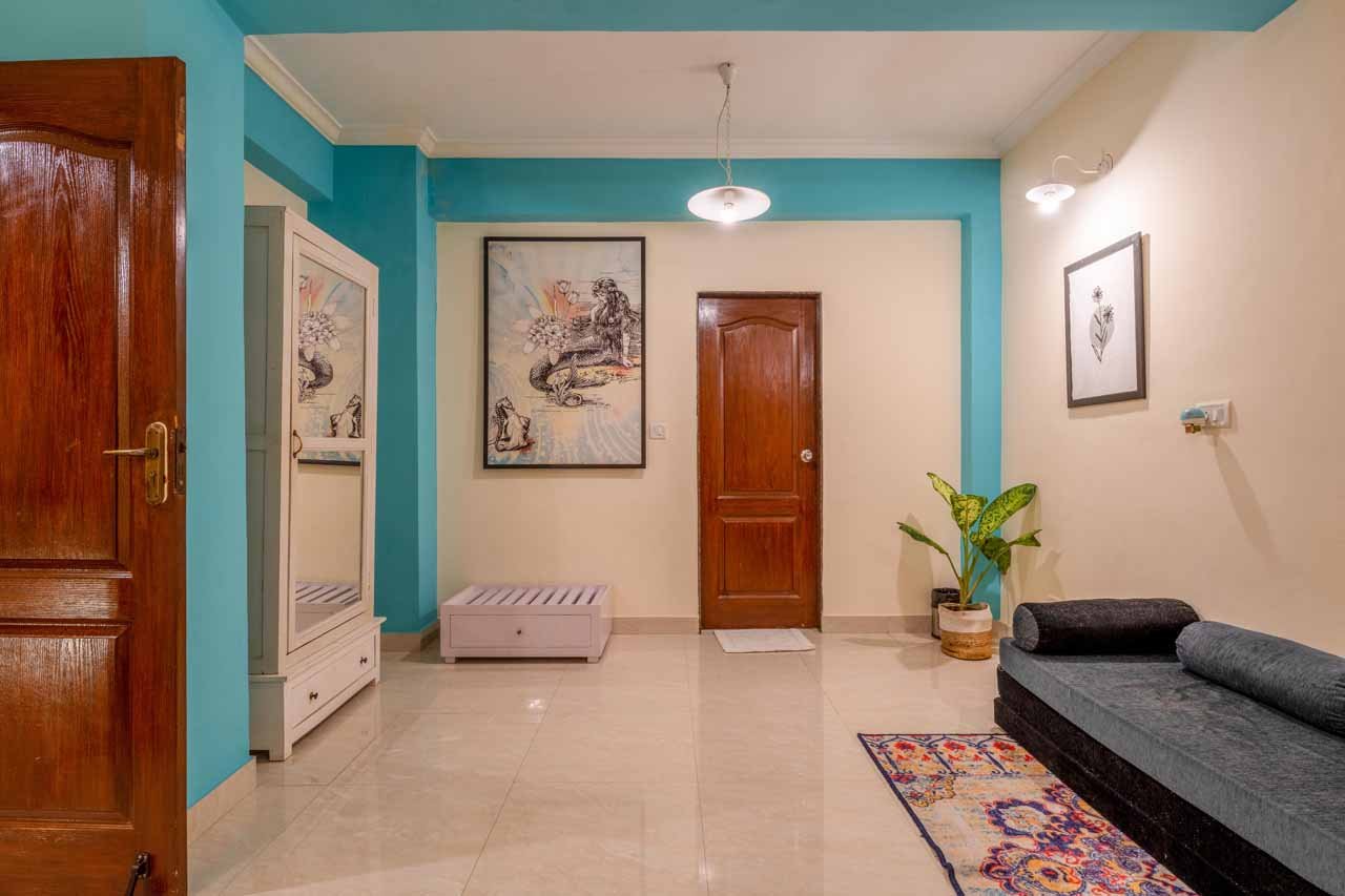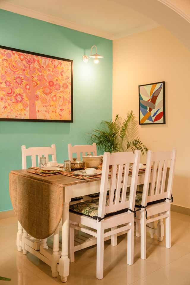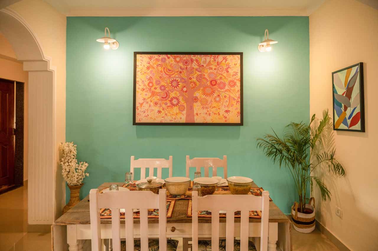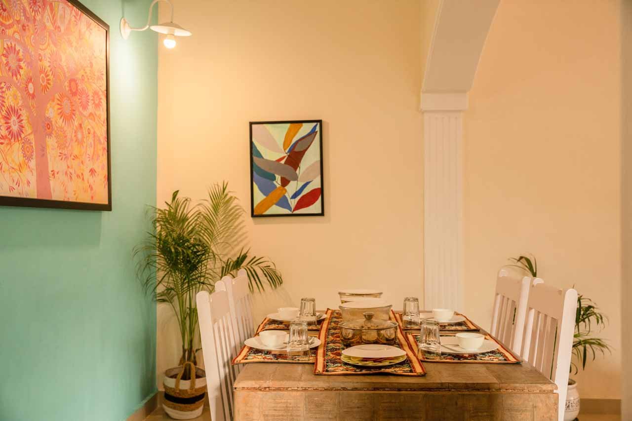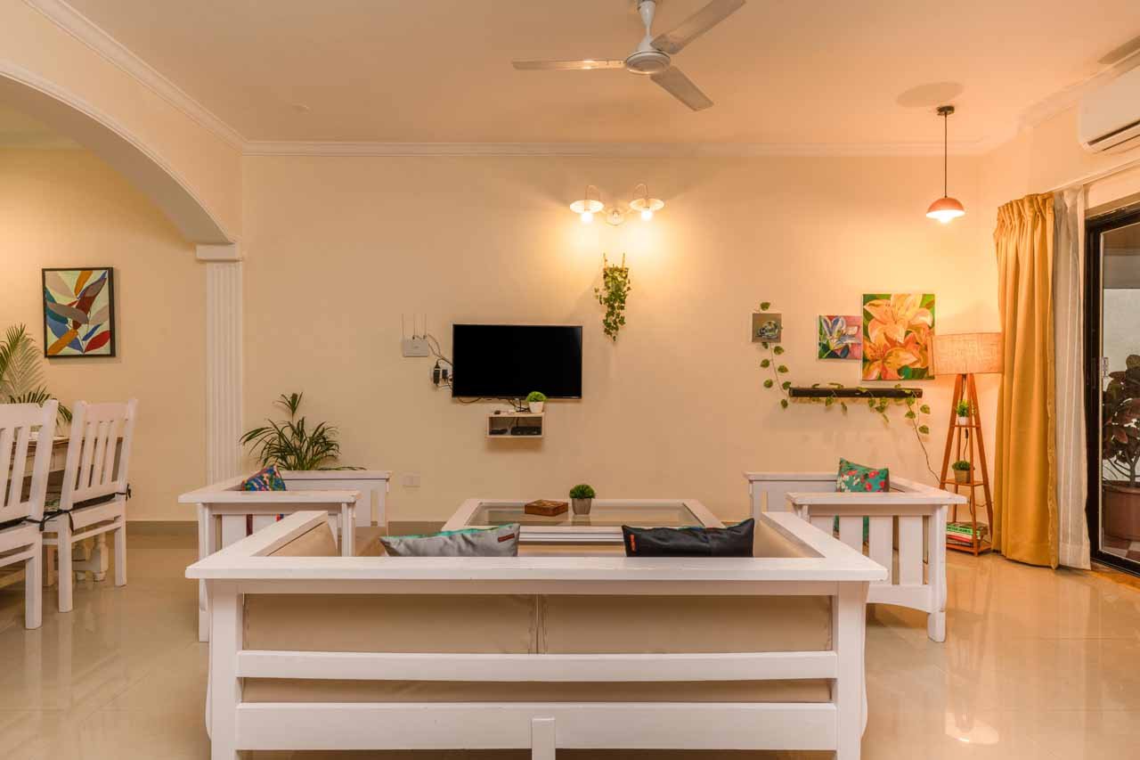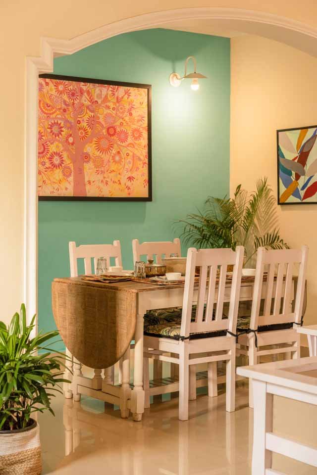 The villa is located in a secure complex surrounded by lush green cover and opens up to a view of the farm opposite to the space. The villa is in close proximity to the beaches of Colva and Betalbatim, which are 2.5 km away.